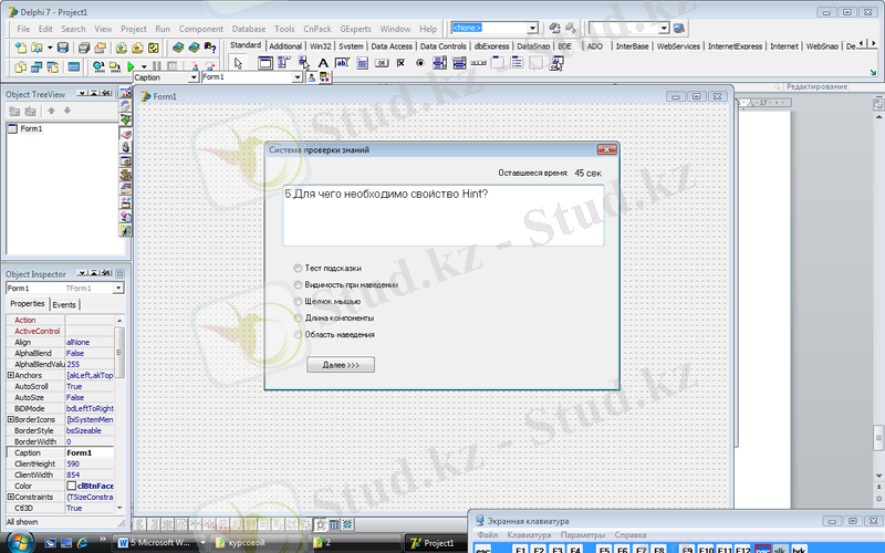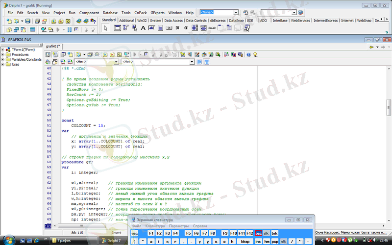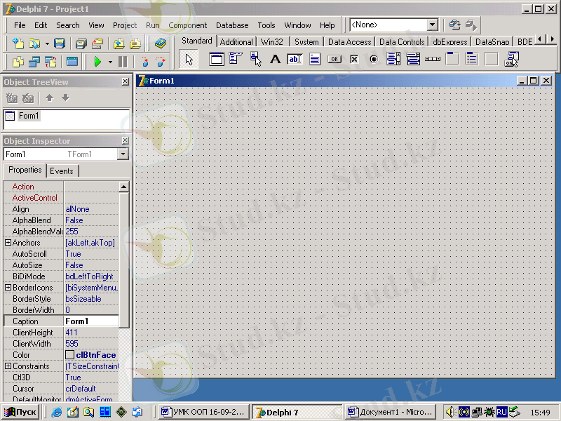 Delphi 7 ортасындағы Form терезесіндегі бағдарлама мәтіні