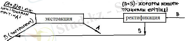 1-сурет. Экстракция және ректификация процестерінің бірлесіп өту тәсілі.
