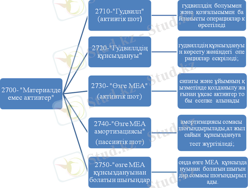 Материалдық емес активтердің қолда бары мен қозғалысының есебі 2730 бөлімшенің активтік шоттарында жүргізіледі: