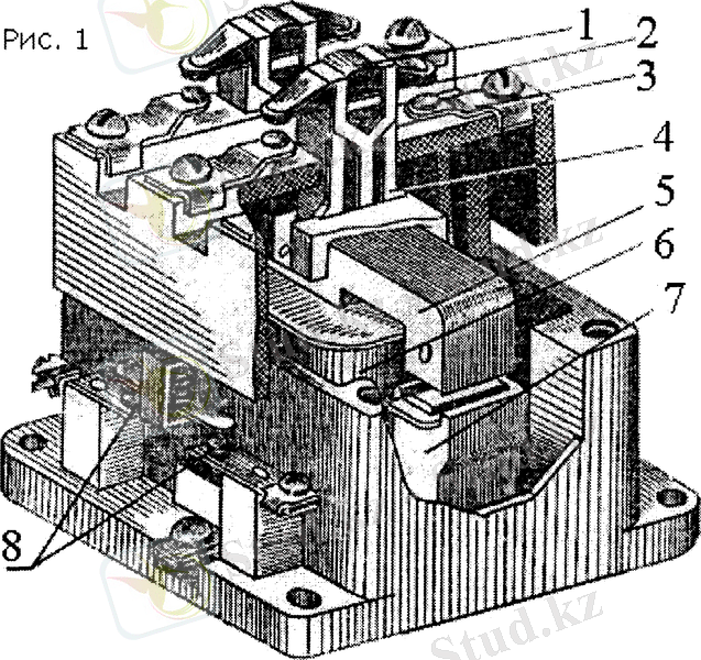 Қосқыштың ішкі корпусы (1 сурет) электр магниттік жүйе орналастырылған, сондай - ақ онда Ш - пішінді жүрекше (7) және орама (6), катушкаға оралған жүрекше бір- бірнеше оқшауланып орналастырылған (уақытша тоқты азайту үшін) . Электротехникалық болат жапырақшалардан жүрекшенің қозғалмалы бөлігі (5) (якорь) пластмассалы (4) бекіткішке (2) өтпелі, қозғалмалы контакты орналастырылған.