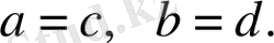 1. Егер екі комплекс сандардың нақты бөлігі мен нақты бөлігі, жорамал бөлігі мен жорамал бөлігі тең болса, онда бұл комплекс сандарды өзара тең деп атаймыз, яғни егер z=a+bi, w=c+di комплекс сандары үшін a=c, b=d теңдіктері орындалса, онда z және w комплекс сандарын өзара тең деп есептейміз және оны былай белгілейді: z=w .