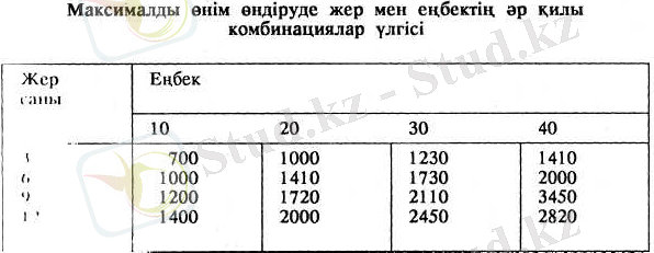 Нақты өндіріс жағдайында кәсіпкерді әрдайым толғандыратын мәселе-өндіріс процесінде белгіленген өндіріс факторларымен өндірілетін өнімнің саны мен сапасы. Техника мен еңбек өнімділігінің белгілі бір даму кезеңінде белгіленген өндіріс фактрларының қуатымен өнім өндірудің максималды шамасына жетуі мүмкін
