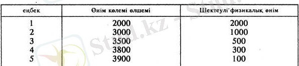 Өнім көлемі мен еңбек өнімінің физикалық шегін сипатгайтын шартгы мысал
