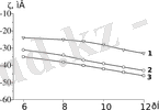 Сурет 2 - Аэрация жоқ кездегі және 10 минуттық аэрациядан кейінгі ортаның рН тәуелділігіне байланысты өлшемдері (-0, 074+0) мм мономинералдар бөлшектерінің электрокинетикалық потенциалының (ζ) өзгерісі.