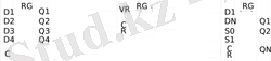 8-суретте көрсетілген микросұлбала шықпасы мынадай: ақпаратты параллель код түрінде жазу кезіндегі D триггердің сәйкес разриядтарының D1 - DИ кірістері; Q1 - QИ - Q триггердің тура шығыстары; С тактілі импульс кірісі; R нөлдік кіріс; S0, S1 ығысу бағытын басқару кірісі; VR оңға қарай ығыструдағы тізбекті код кірісі; VL белгісі колданылады.