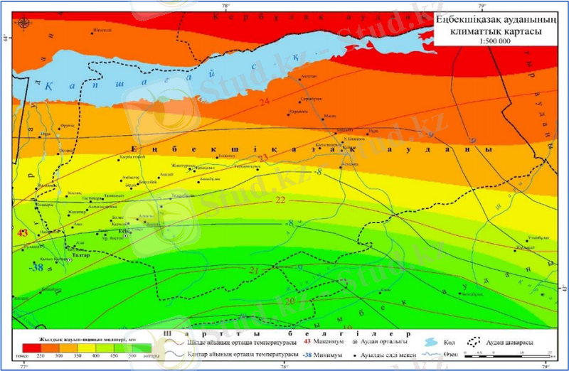 Сурет 1. Еңбекшіқазақ ауданының климаттық картасы