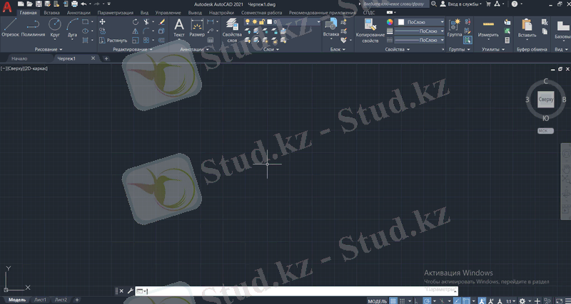 Сурет 2. - AutoCAD жұмыс кеңістігі