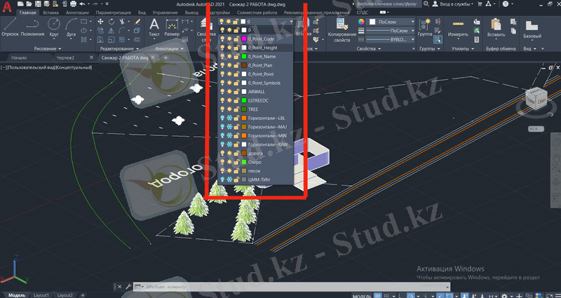 Автокад бағдарламалық құралында тахеометрден деректерді өңдеуді жүргізу.