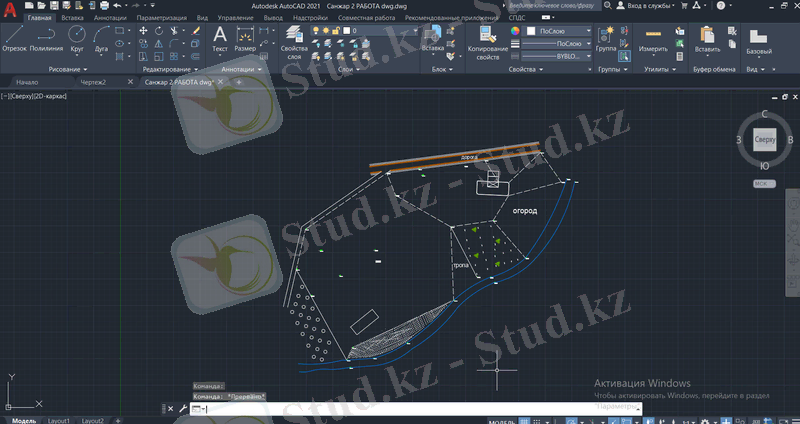 Топографиялық жоспарларды жасау-алынған нәтижелердің дәлдігін бағалай отырып, деректерді түпкілікті өңдеу. Сонымен, Тахеометриялық түсіру орындалды және тахеометрден алынған деректер мәтіндік файл түрінде компьютерге беріледі. Кейін файл ГЕОтерминал бағдарламасы арқылы импортталды. AutoCAD-Autodesk компаниясы әзірлеген екі және үш өлшемді автоматтандырылған жобалау және сызу. Сызу және өңдеу жұмысы өндірісте күнделікті қолданатын Автокад бағдарламасына қосымша ретінде орналастырылған кіші арнайы геодезиялық МенюГЕО главная, МенюГЕО дополнительная бағдарламалармен өңделу керек.