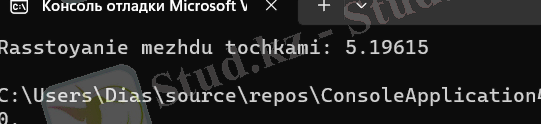 std::cout << "Расстояние между точками: " << distance << std::endl;