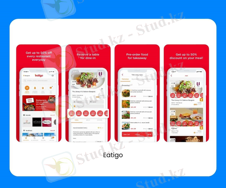 Мысал ретінде Азиядағы дәмді әрі қолжетімді тағамдар үшін ең жақсы Eatigo қосымшасын алуға болады. Eatigo - бұл мейрамханаларды 50% жеңілдікпен табуға және брондауға көмектесетін, 10 миллионнан астам адам пайдаланатын сенімді Азиядағы №1 мейрамханаларды брондау платформасы. Қосымша орналасқан жеріңізге, бос орындарыңыз бен қызығушылықтарыңызға байланысты ең жақсы ұсыныстарды табу үшін пайдалануға арналған.