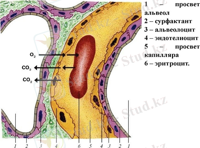 Сурет 2. Альвеолла-капилляр сұлбасы