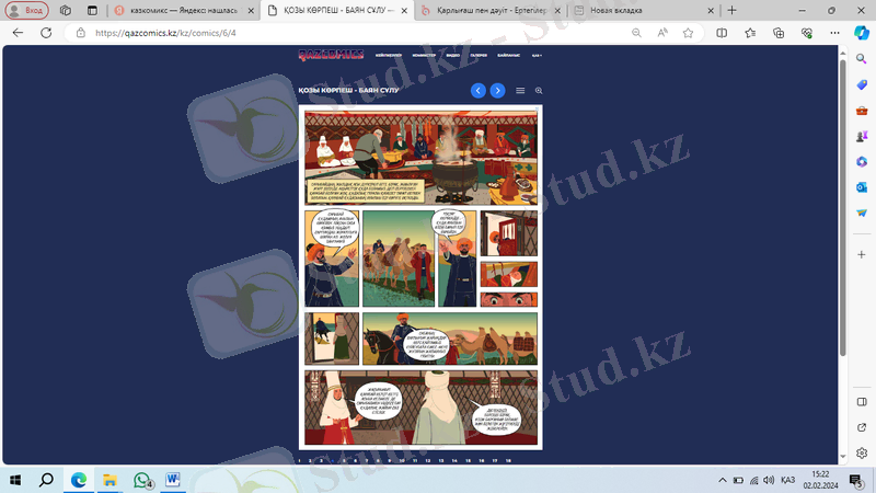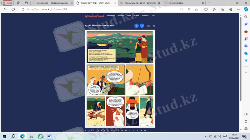 - QAZCOMICS. KZ сайтында берілген мәтін мазмұнымен танысады, жоспар құрады.