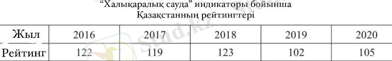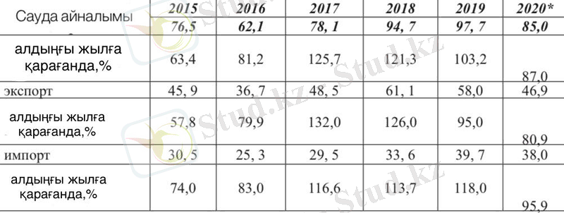Және “Қазақстан Республикасының сыртқы сауда байланыстарының даму тендециялары” атты Колисецкая Елена Романовнаның мақаласына негізделген[2] .