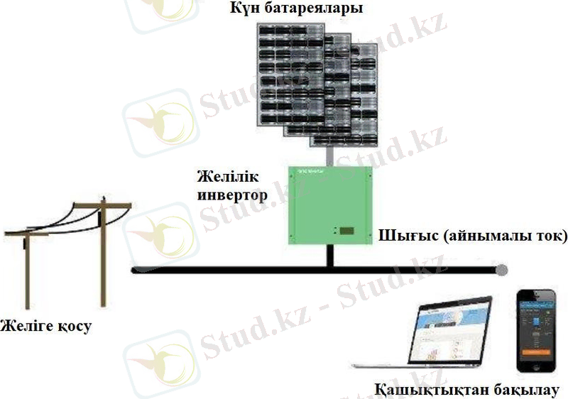 Жұмыс принципі: Бұл жүйеде күндізгі уақытта жүйе өндіретін электр қуатын бірден пайдалануға немесе негізгі желіге беруге болады. Күн жүйесінің бұл түрі күн жүйесі өндіретін артық электр энергиясын автоматты түрде желіге береді. Қуат тапшылығы кезінде экспортталған қуат желіге қайтарылады.