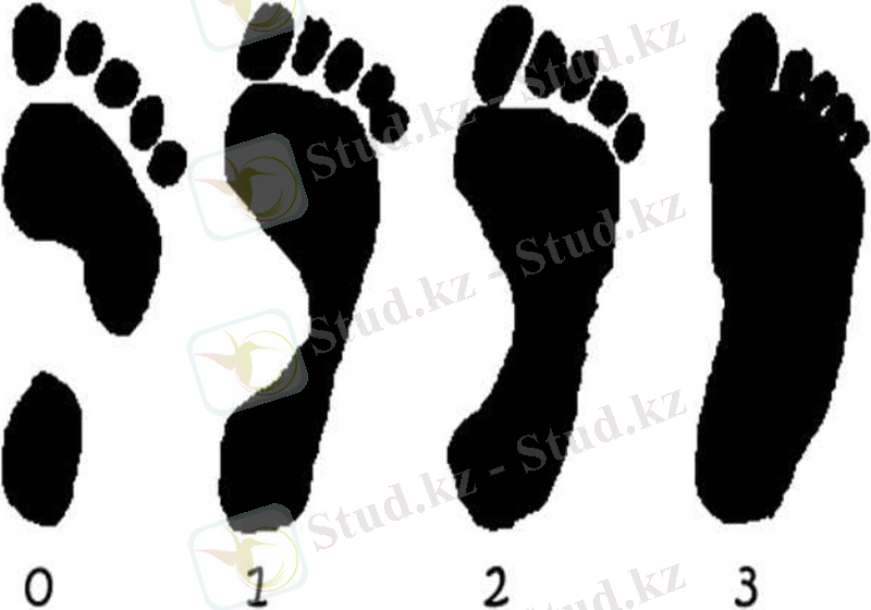 Жалпақ табандылықтың 0-ден 3-ші дәрежесіне дейінгі аяқ ізі