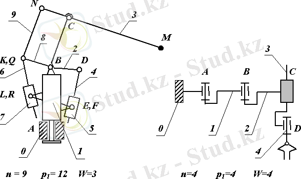Бұл механизм үш қозғалмалы буыннан және үш кинематикалық жұптан тұрады: екі үш жылжымалы сфералық A3сф және C3сф және бір жылжымалы айналмалы B1а.
