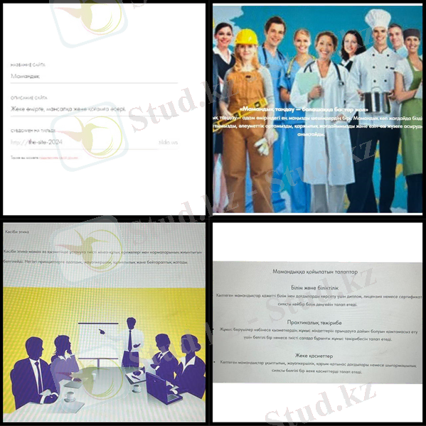 Бізге берілген тапсырма tilda платформасы арқылы әркім өзі таңдаған тақырыбы бойынша сайт құрады. Лонгрид форматы арқылы жасау қажет. Менің таңдаған тақырыбым - «Мамандық».