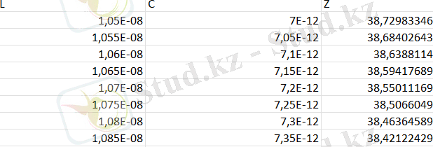 Өз нұсқан бойынша шамаларды қолданып, толқындық кедергіні табу қажет. Толқындық кедергінің индуктивтилікке тәуелділік графигін Excel бағдарламасында салу керек.