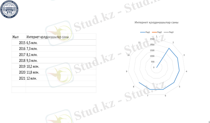 Сурет 2. 1 - Қазақстандағы интернет қолданушылардың саны