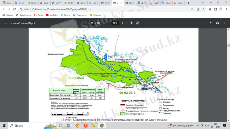 1. 3-сурет. Қызылорда оңжаға және солжаға суғармалы массивтердің орналасу схемасы