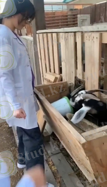 Нуби тұқымдас ешкі мен Альпии текесімен де танысып, ешкінің желінін жуып, қолғабымызды киіп, ешкіні де сауып алдық.