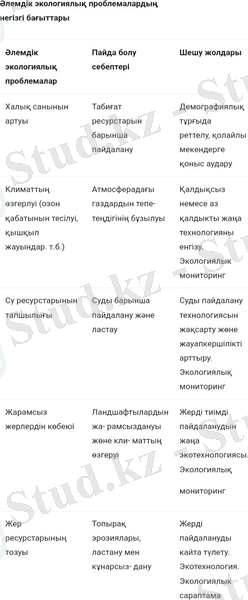 атмосфера (ластануы, фотохимиялықтүтін, қышқылдықжауындар, , ) ;