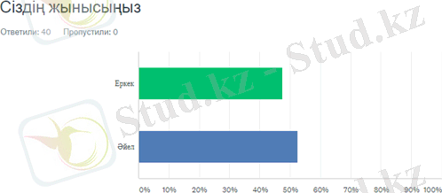 Сауалнамадан 47, 50% ер адамдар мен 52, 50% әйел адамдар сәл жоғары көрсеткішпен өтті.