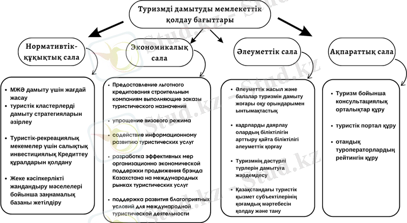 Сурет 1. Туристік қызметті дамытуды мемлекеттік қолдау бағыттары