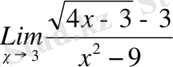 №1 СӨЖ. Жұмыстың мақсаты: Студенттерге Функцияның шегі, бірінші және екінші тамаша шек жайында мағлұмат беріп, мысалдар келтіріп, есептер шығаруда оларды қолдануды үйрету. Эквиваленттілік кесте көмегімен шектерді есептеу.