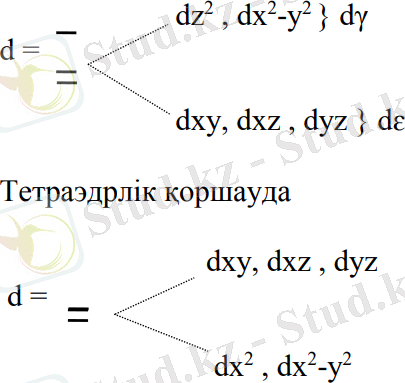 dγ және dɛ орбитальдарының арасындағы энергияның айырымы ∆ - ажырау энергиясы; е) егер лигандалар күшті өріс туғызса, ∆ (ажырау энергиясының) мәні жоғары болады. Өрісінің күшіне қарай лигандалар мынадай қатарға орналасады: