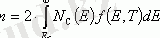 Жазбаша интегралдың жоғарғы шегі ретінде біз өткізгіштік аймағының жоғарғы жиегінің энергиясын алуымыз керек екенін ескеріңіз. Бірақ, E > F энергиялары үшін F функциясы E ұлғаюымен экспоненциалды түрде тез төмендейтіндіктен, жоғарғы шекті шексіздікке ауыстыру Интеграл мәндерін өзгертпейді. (1. 9) өрнектерін (1. 6) және (1. 8) ауыстырыңыз. Интегралды есептеу қиын емес. Біз аламыз