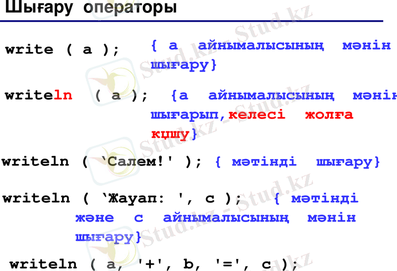 I. ПАСКАЛЬ ТІЛІНІҢ НЕГІЗГІ ОПЕРАТОРЛАРЫ