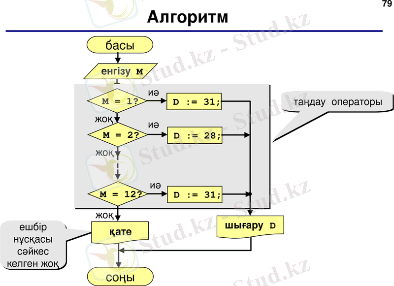 11-сурет. Ай нөмірін енгізіп, осы айдағы күндердің санын шығарудың блок-схемасы.