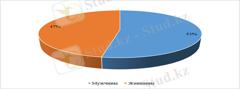 Жынысы бойынша респонденттер осылай бөлінді: ерлер - 53% (16 адам), әйелдер - 47% (14 адам) (2-сурет) .