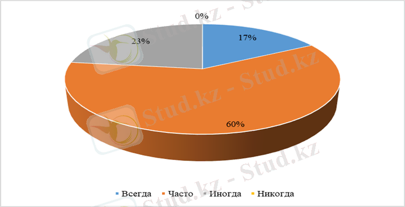 «Сіз қаншалықты жиі стрессті сезінесіз?» пациенттер келесі жауаптарды берді: әрқашан-17% (5 адам), жиі - 60% (18 адам), кейде - 23 (7 адам) және ешқашан - 0% (3-сурет) .