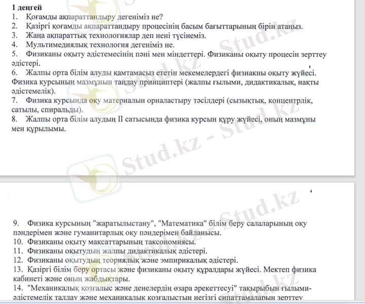 1. 2. Физиканы оқыту әдістемесінің зерттейтін мәселелері мен оқыту әдістері және міндеттері.