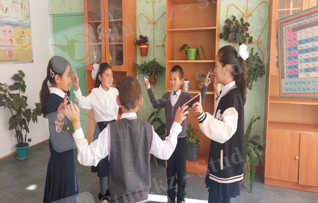2-3 сынып оқушыларына ойын элементтерін пайдалану арқылы олардың танымдық процестерін дамытуға арналған әртүрлі жаттығулар өткізілді. Оқушылар жаттығуларға өте белсенділікпен қатысты.
