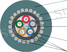 ТАЕ құрылысындағы қолданылатын “Siemens AG” фирмасының A - DF(ZN) 2Y 5x4E9/125 маркалы оптикалық талшықты сыртқы кабель құралмасы суретте көрсетілген. Қолданылатын кабель халықаралық АМТС қосу үшін арналған, жеткізудің ерекше техникалық шарттарына сәйкес дайындалады. Кабель қорғаулы полиэтилен құбырларында үлкен емес кабель төсеу үшін қарастырылған.