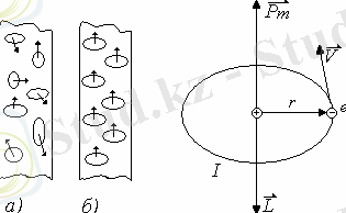 Электрондық теория бойынша атомдардағы электрондар дөңгелек орбита бойынша қозғалатындығын бiлемiз. Егер дөңгелек ток процесiн қарастырсақ, онда тұйық орбитамен айналып жүрген электрон да осы ток тәрiздi. Яғни атом iшiнде электрон радиусы дөңгелек орбита бойынша сызықтық жылдамдықпен қозғалып жүрсiн (2-сурет) . [1]