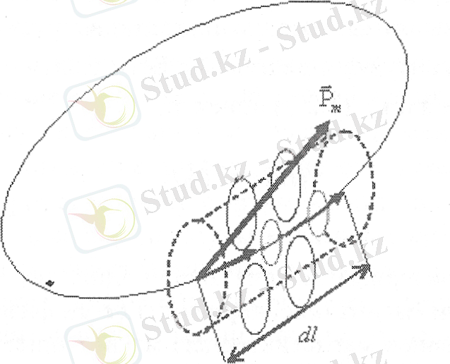 Интеграл алынатын L контур өткізгіштік токтармен қатар молекулалық токтарды да қамтиды. Осы контурдың элементімен қамтылатын молекулалық токтар үшін осы кесіндімен, ал табанының ауданы молекулалық ток контурының ауданына тең цилиндр қарастырамыз. Центрлері көлемі көлбеу цилиндрдің ішінде жататын молекулалық токтар элементпен қамтылады. (3-сурет) . Егер бірлік көлемдегі молекулалар саны n болса,