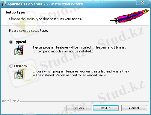 Бұл терезеде таңдаушаны Typical дегенде қалдырып, Next батырмасын басамыз. Келесі көретін тереземіз: