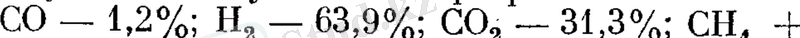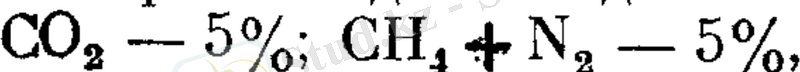 алты еселік артық бу қатысында және 450 - 500°C температурада құрамы шамамен осындай болатын конвертирленген газ алуға болады (мысалы) :