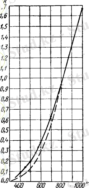 71 сурет. Су буы мен көміртек тотығы арасындағы температураға байланысты болатын реакция тепе - теңдігінің константа тәуелділігі