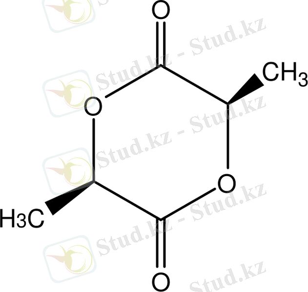 Сүт қышқылы (2-гидроксипропион қышқылы), СН, - СН (ОН) - COOH), L - және D-изомерлі формада кездеседі. Ферментациялау (ашыту) процестерінде алынатын өнім 99, 5 % L-изомер және 0, 5 % Д-изомерін құрайды [31] . Бұдан басқа оны рацемикалық формасы кездеседі. Сүт қышқылы түссіз кристал, гигроскопиялық, оңай димер - лактид циклін түзеді (сур. 2) .