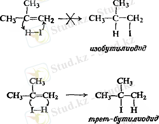 Осы орайда изобутилен де екі өнім түзуі мүмкін - изобутил немесе үшіншілік - бутилгалогенид.