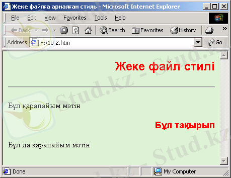 <TITLE> Жеке файлға арналған стиль </TITLE>