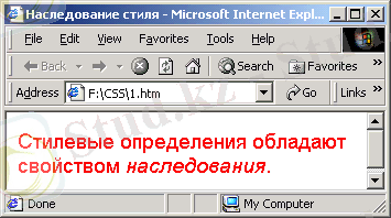 Стильдің мұра ретінде берілуі <body> тэгі үшін анықталған стильдің құжаттағы барлық тэгтерге әсер ететіндігін білдіреді. Сәйкесінше егер бір тэг үшін стиль құрылса, онда сол тэг ішіндегі басқа тэгтерге де осы стиль міндетті түрде беріледі.