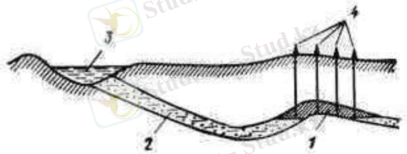 Өткізгішті қабат 2 (1-сурет. ) мұнай алу аймағын 1 мен қоректену аймағын 3 арасындағы гидродинамикалық байланысты қамтамасыз етеді, бұған табиғи суат - өзен арнасы қызмет бола алады.