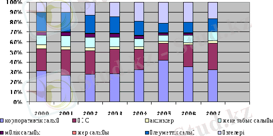 3 - сурет. Қазақстан Республикасының мемлекеттік бюджетіне түсетін салық түсімдерінің құрылым.
